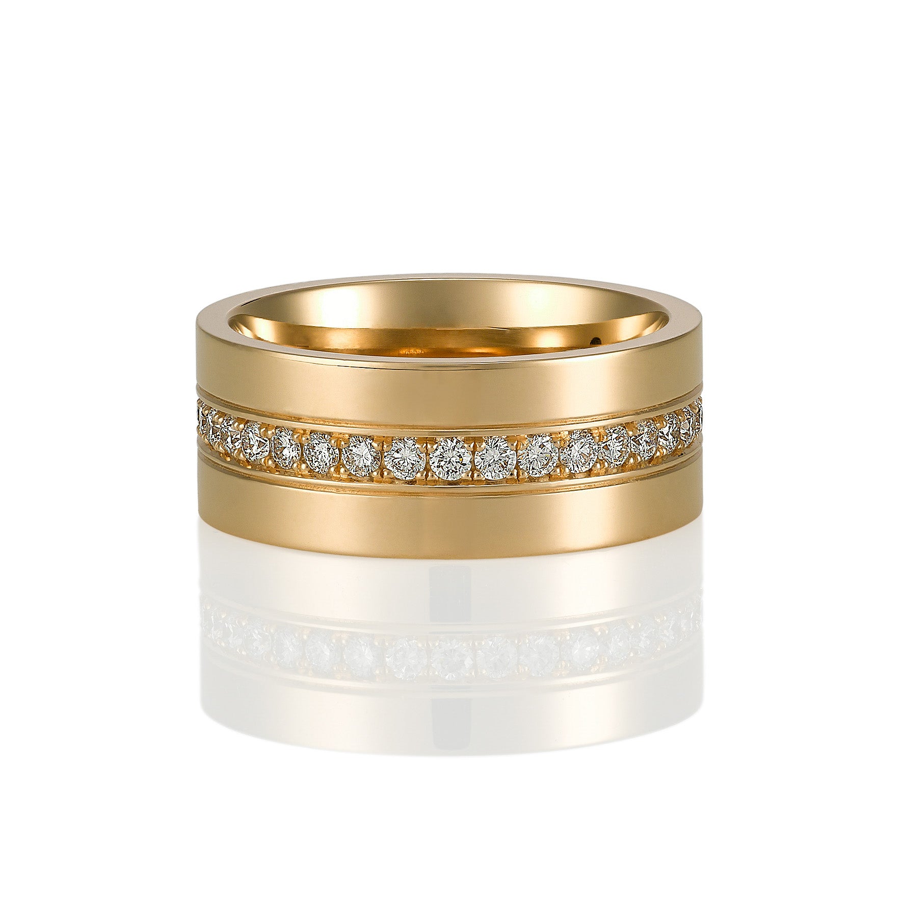 YELLOW GOLD ONE ROW PAVE DIAMOND WEDDER